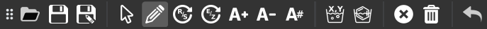 Pen: Add tool. Clicking on an existing atom will add the current selected atom type to that atom with a single bond. Clicking on the canvas will add a disconnected atom. Clicking on a bond will cycle through single, double and triple bonds.
