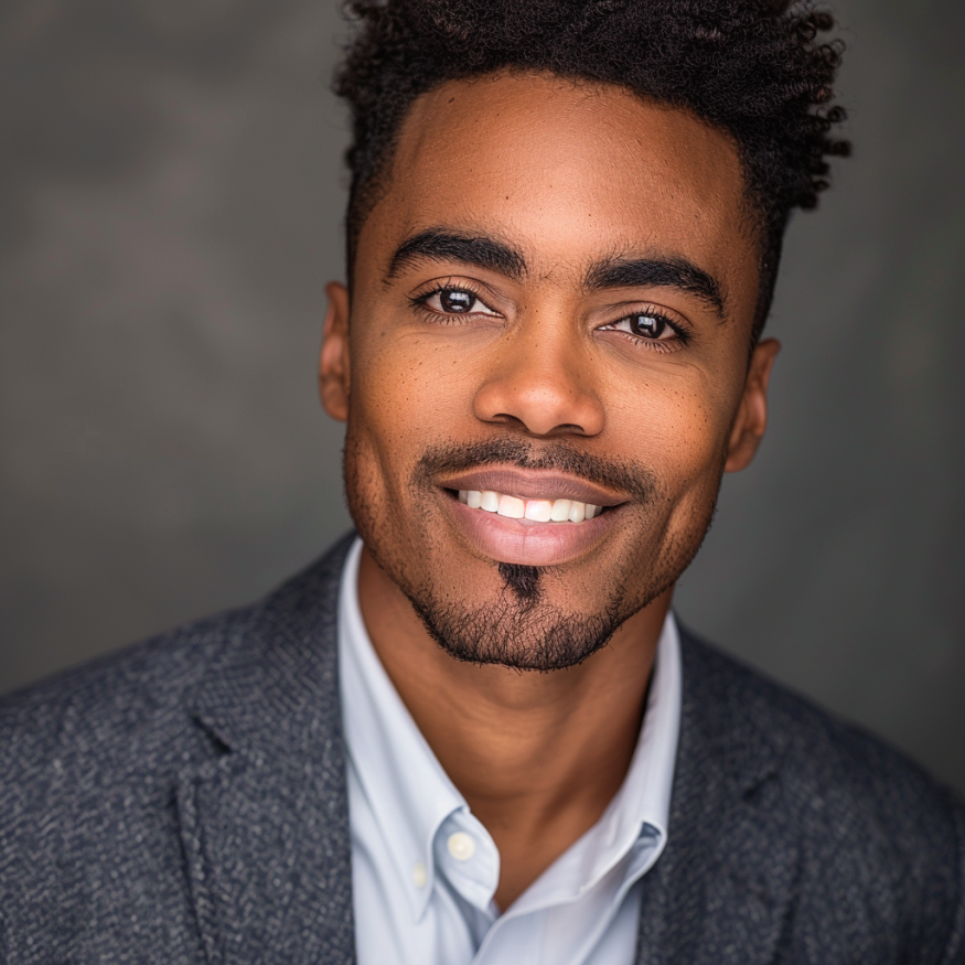 "A professional, high-resolution profile photo, maintaining the exact facial structure, identity, and key features of the person in the input image. The subject is framed from the chest up, with ample headroom. The person looks directly at the camera. They are styled for a professional photo studio shoot, wearing a premium smart casual blazer in a subtle charcoal gray. The background is a solid '#562226' neutral studio color. Shot from a high angle with bright and airy soft, diffused studio lighting, gently illuminating the face and creating a subtle catchlight in the eyes, conveying a sense of clarity. Captured on an 85mm f/1.8 lens with a shallow depth of field, exquisite focus on the eyes, and beautiful, soft bokeh. Observe crisp detail on the fabric texture of the blazer, individual strands of hair, and natural, realistic skin texture. The atmosphere exudes confidence, professionalism, and approachability. Clean and bright cinematic color grading with subtle warmth and balanced tones, ensuring a polished and contemporary feel."