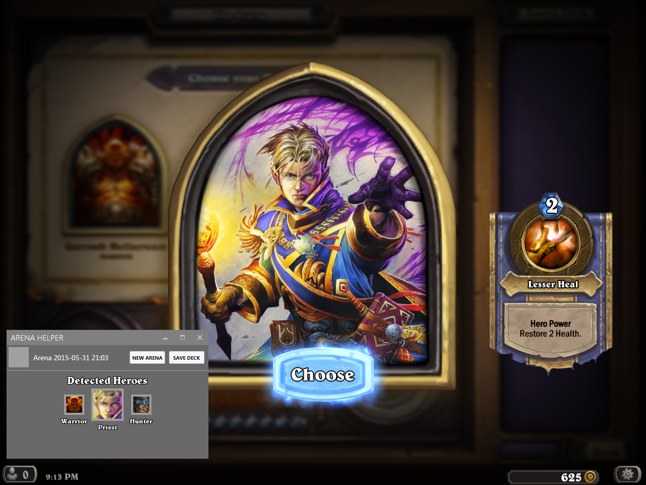 When you start a new arena run, open up the Arena Helper window from the plugins menu. Arena Helper will try to detect the arena window and the heroes that can be chosen.